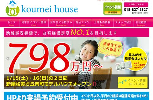 コウメイハウスは、新築戸建てが最安798万円から建てられる会社で、家づくりのサポート、住宅ローン審査などの相談にも対応しています。